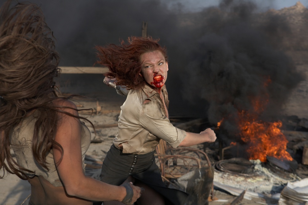 V rámci našeho letošního zaměření na snímky se silnými ženami jsme nemohli opomenout nejvýraznější počin této kategorie posledních let – požitkářsky rozjívený i sofistikovaně podvratný film Kurevská nakládačka. Již úvodní titulky, které v obrazové koláži citují řadu kanonických děl, nenechají nikoho na pochybách, že se jedná o film, jenž oslavuje tradici snímků i televizních seriálů, v nichž si výrazné hrdinky razily svou cestu šovinistickým světem. Také zdejší tři spoře oděné a vnadné hrdinky nejsou žádné puťky, které by doma čekaly na manžílka s nachystanou večeří, lahváčem ze sedmého schodu a vycíděným záchodem. Ačkoli s bravurou ovládají střelné i bodné zbraně a radši dají o ránu navíc, než by se pozastavovaly nad zlomeným nehtíkem, jejich hlavní zbraní je jejich vzhled, ze kterého nejeden muž uronil do kalhot. Právě v tom, že hrdinky svých vnad vědomě využívají, aby své protivníky vodily za nos, či z nich dostaly kýžené informace, a zároveň nemají nejmenší zájem na jakýchkoli tradičních hodnotách jako je domov, rodina či heterosexuální vztah, se zakládá zdejší pojetí emancipace. Ačkoli film částečně využívá podobný styl jako machistické spektákly Sin City – Město hříchu (2005), 300: Bitva u Thermopyl (2006) a Spirit (2008), jež nesou autorský otisk komiksového sexistického fantasty Franka Millera, optika Kurevské nakládačky je naprosto opačná. Namísto slastné fetišizace ženského těla po vzoru Playmate videí či mastubačních intermezz v Pobřežní hlídce zdejší vilné natřásání dekoltů a zpomalené záběry vodních hrátek staví ženy do pozice aktivních postav, které muže i publikum směřují do role pasivních pozorovatelů.
