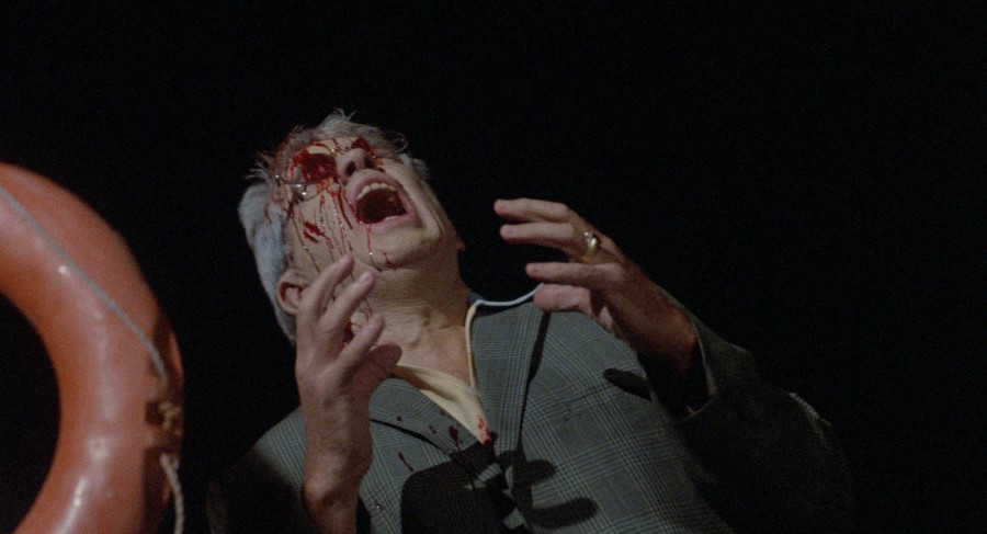 Film Zrzavý pasažér se snaží nahnat úlitby přes tři herecká esa v rolích postarších gangsterů. Na lodi se nám tak motá zralá televizní hvězda Alex Cord (Airwolf) smyslně mrskající knírem. Dále tu tajtrlíkuje zkušený filmový harcovník Clu Gulager (Návrat oživlých mrtvol), který vybaven umělým chrupem a jogurťáky blábolí z cesty. Trio završuje nezaměnitelný šedivák George Kennedy (Frajer Luke), jenž buď imrvére vymrmlává, nebo řve jak Tarzan. Ve společnosti spoře oděných mládežnických amatérů a srandovního vraždícího monstra jsou ale hereckým matadorům veškeré profesní zkušenosti a léta před kamerou platné jak mrtvému zimník.